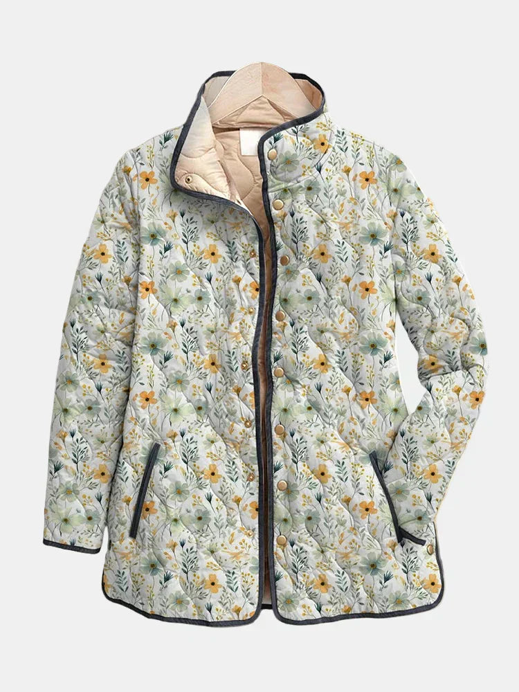 Kaevia | Retro Floral Patterned Quilted Jacket